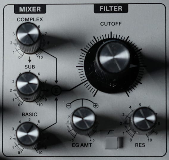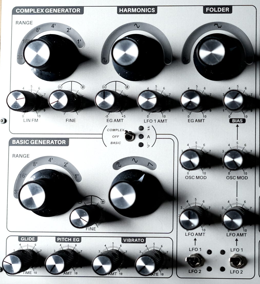 The layout and functionality focusses your attention on the complex oscillator, the beating heart of the instrument. The other sound sources, the basic oscillator and sub oscillator, are there to compliment what you design with the complex oscillator. The The more important aspect of the basic oscillator is to use it as another modulation source. That's not to say it doesn't sound phat, because it really sounds lovely on itself and as a layer to compliment the complex oscillator.